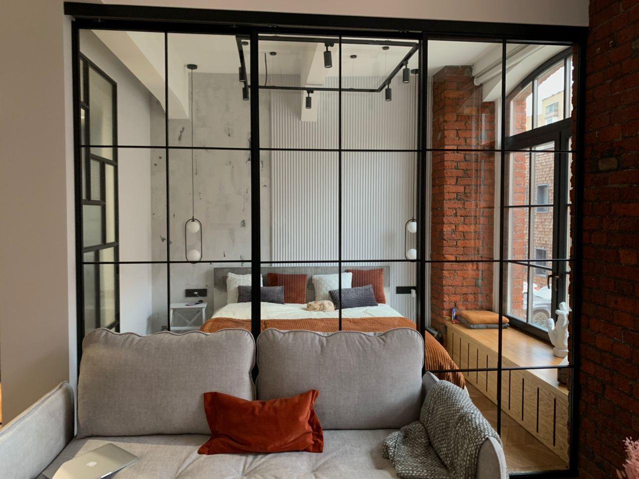 Окно-перегородка – компактная конструкция, которая поможет разделить зоны в пространстве, например, обособить спальное место от зоны отдыха в квартире-студии.